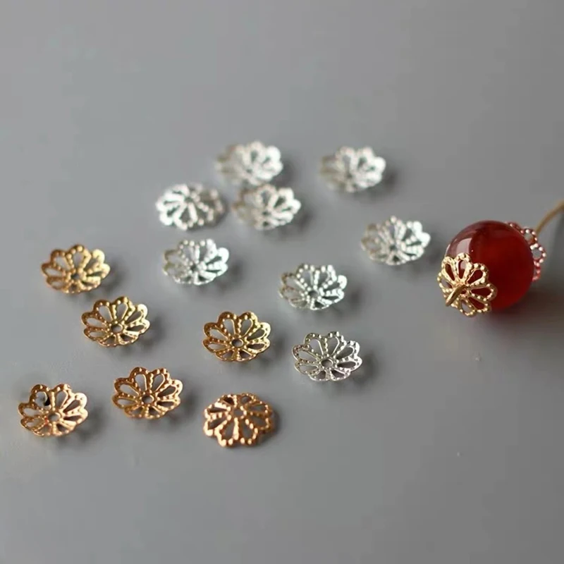 Name: Cuentas de pétalos de flores doradas y plateadas, copas espaciadoras de extremo a granel, cuentas de abalorios, gorros para fabricación de joyas, accesorios, suministro DIY, 9mm, 200 Uds.