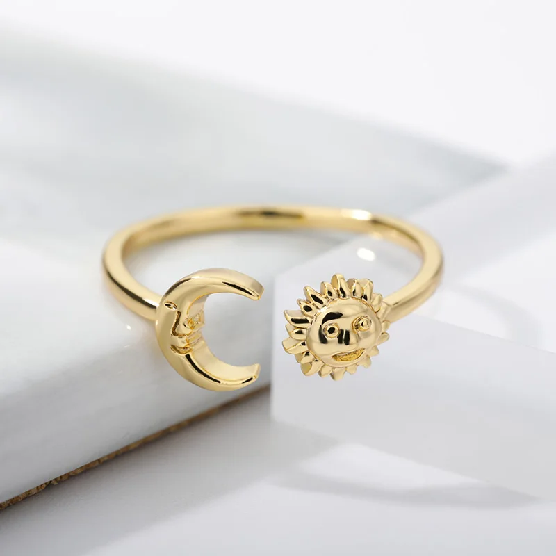 Apropiado artículo y envío rápido. vendedor recomendado para Anillos de tendencia para mujeres y niñas, parejas, ajustables, Vintage, cara de luna y sol, acero inoxidable, regalo estético de San Valentín para boda
