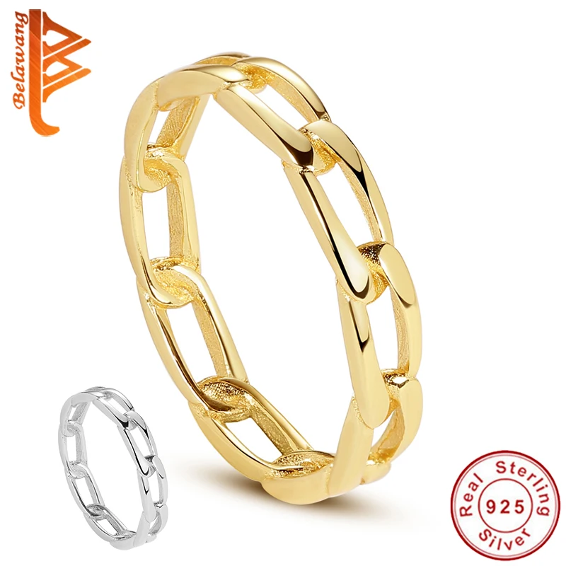 Name: BELAWANG-Anillo de eslabones 100% Plata de Ley 925 chapado en oro de 18k para mujer, anillo de estilo sencillo, regalo de cumpleaños